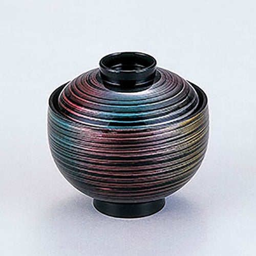 350-42402 浄土椀 ピンクブルー黄ハケ目内黒