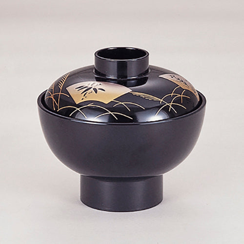 350-53082 4寸丹波椀 総黒扇面
