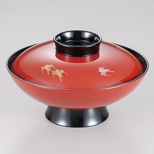 350-08037 5.5寸小槌型煮物椀 朱千鳥見返し御所車