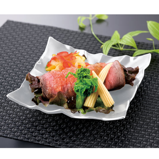534-00242 筋彫笹型尺3寸皿 白磁