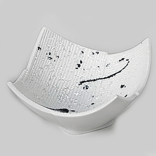 534-00146 筋入り市松3.7寸角小鉢 黒飛ばしラスター
