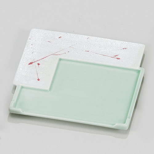 535-00009 角違い7寸角向付 ひわ釉赤散らしラスター
