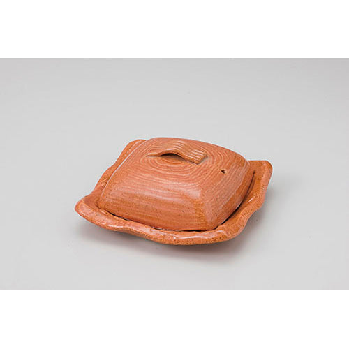 721-10037 赤楽5寸角陶板 蓋付