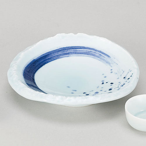 535-00090 青磁呉須刷毛目渕石目楕円向付