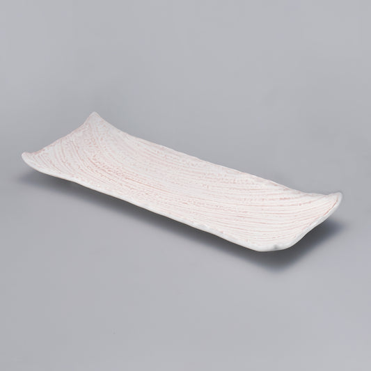 青磁ラスター3色遊び両上り長角8寸向付・丸千代久