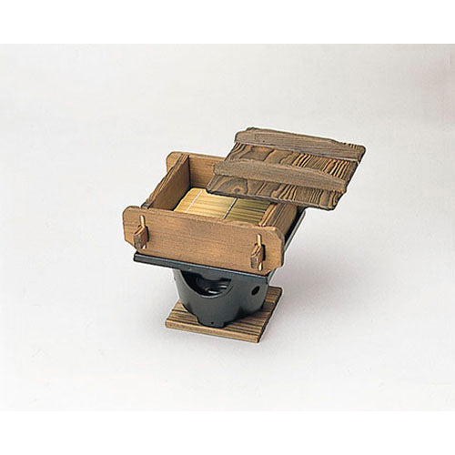 820-18001 焼杉角セイロ(蓋、竹ス付)