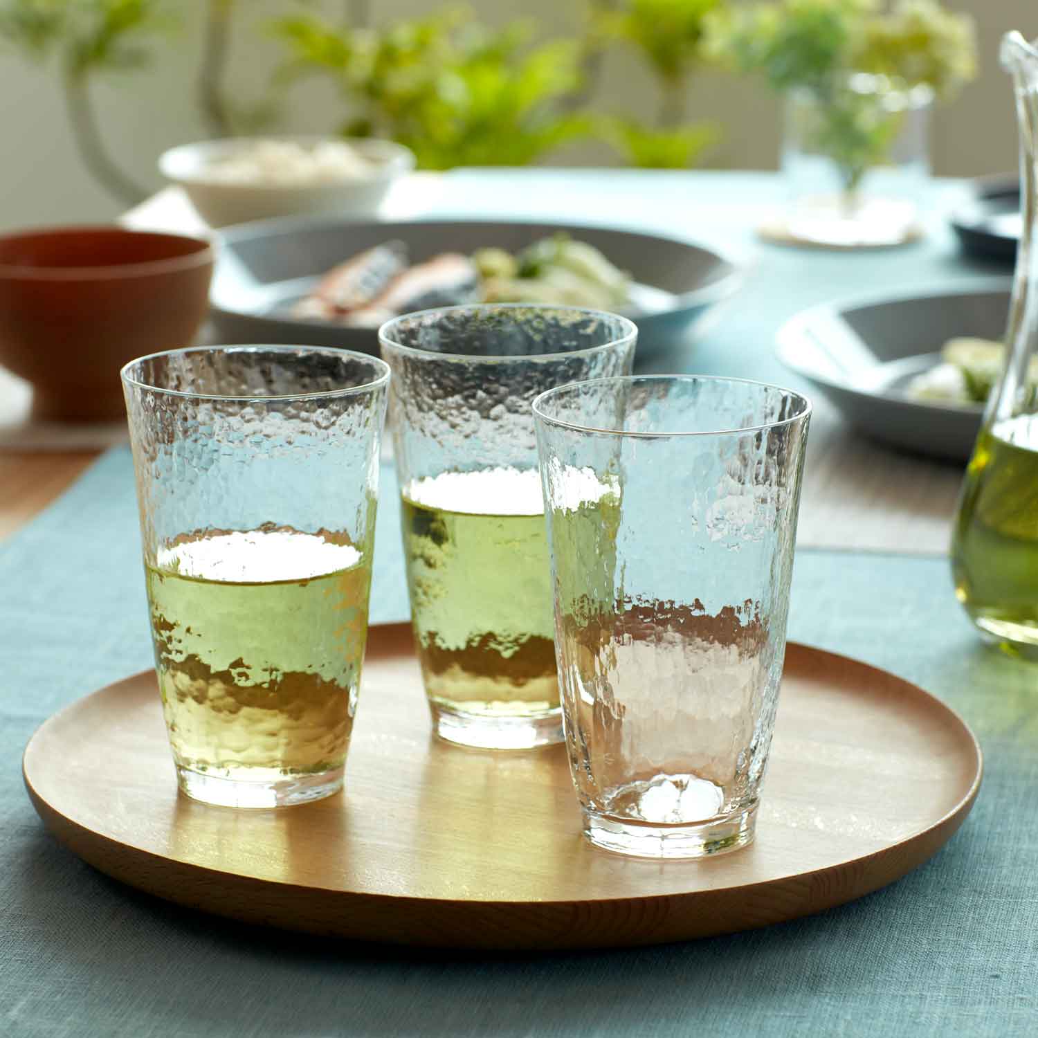 ガラス表面の模様は、手作り特有の技法による自然な凹凸模様になっています。