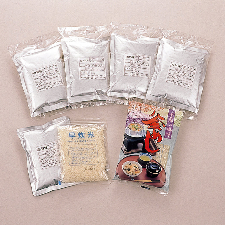 ■本品の釜めしセットは、本格的な京風の味の釜めしの素(ストレートタイプ)と独特の製法で風味をそこなわずに、ふっくらやわらかな早炊米(洗米・浸漬加工処理)セットの商品です。