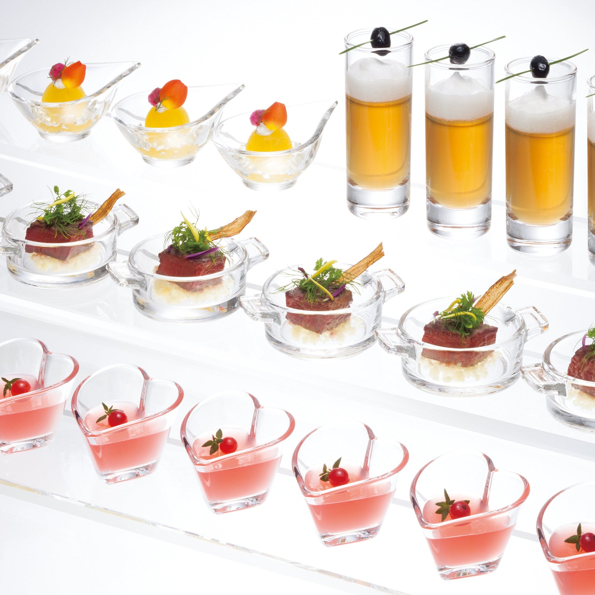 人気のビュッフェスタイルなどに使いやすい小さなガラス器です。